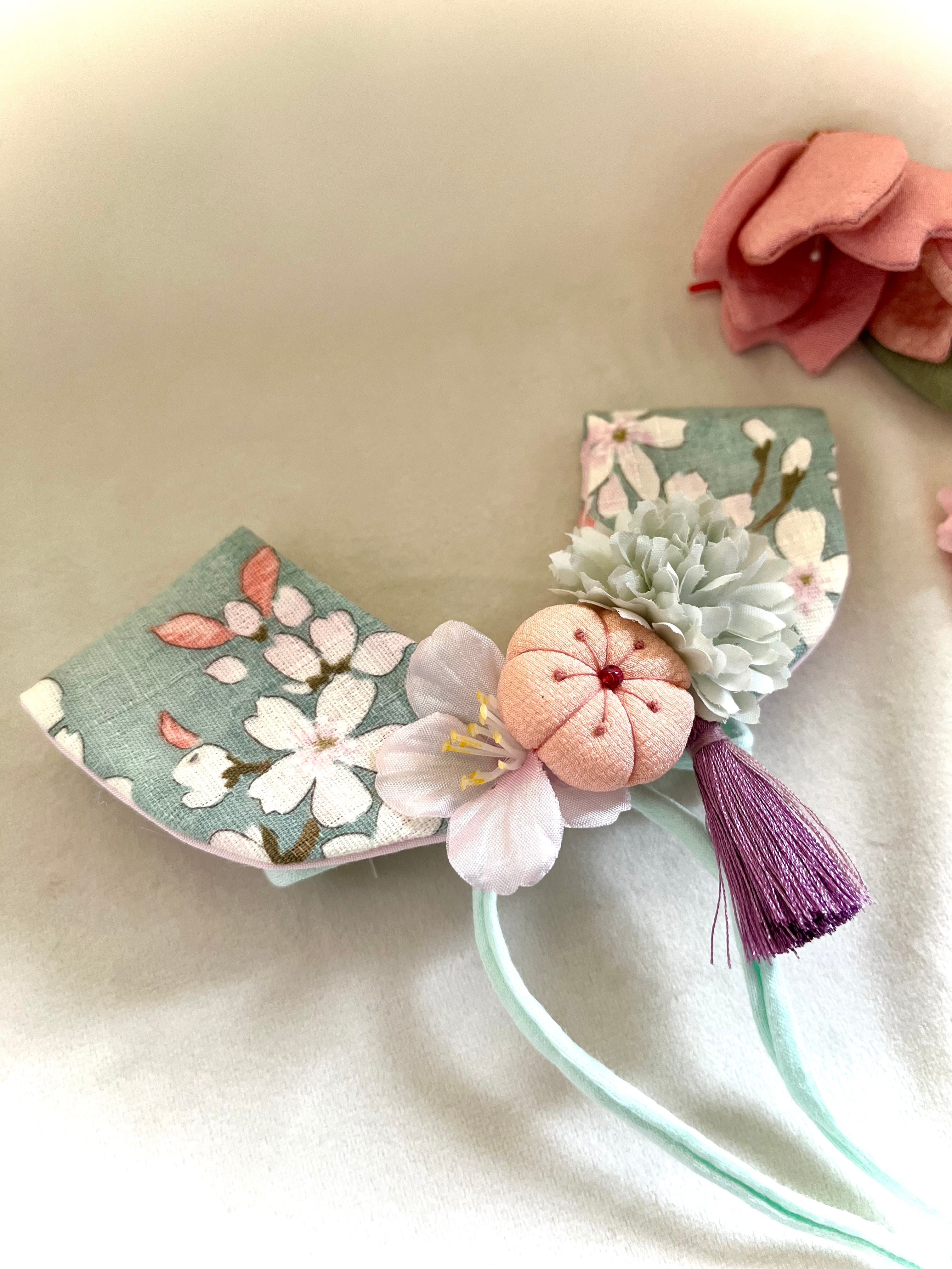 マムとつまみ細工、桜、タッセルを合わせました。